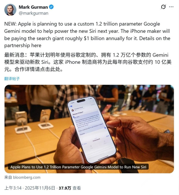 1⃣Siri 或迎最强外援:苹果拟每年支付 10 亿美元集成谷歌 Gemini