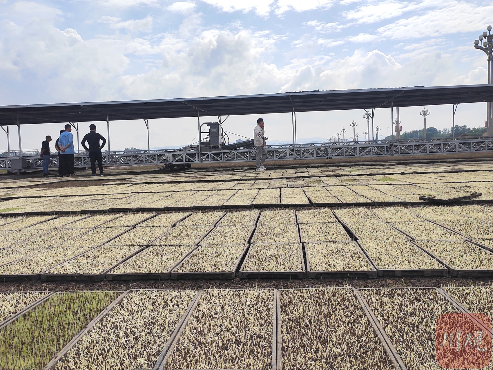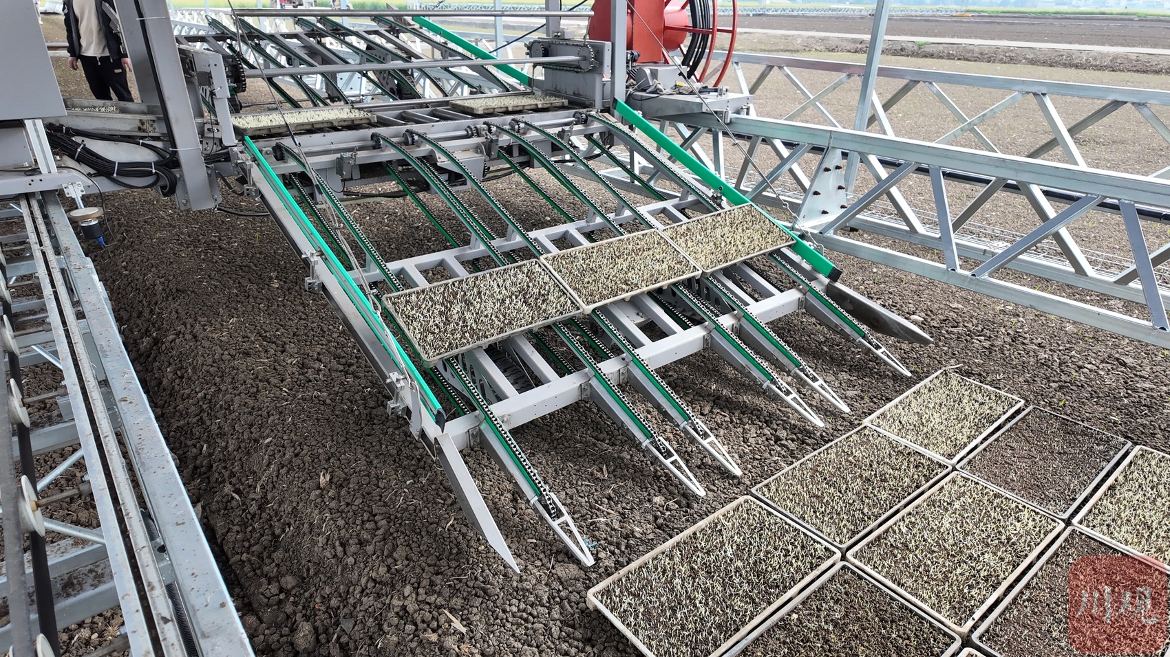 据省农业农村厅农业机械化处处长周杉介绍,冷辑龙这台设备是四川首台投用的大田自动化摆秧起秧设备。