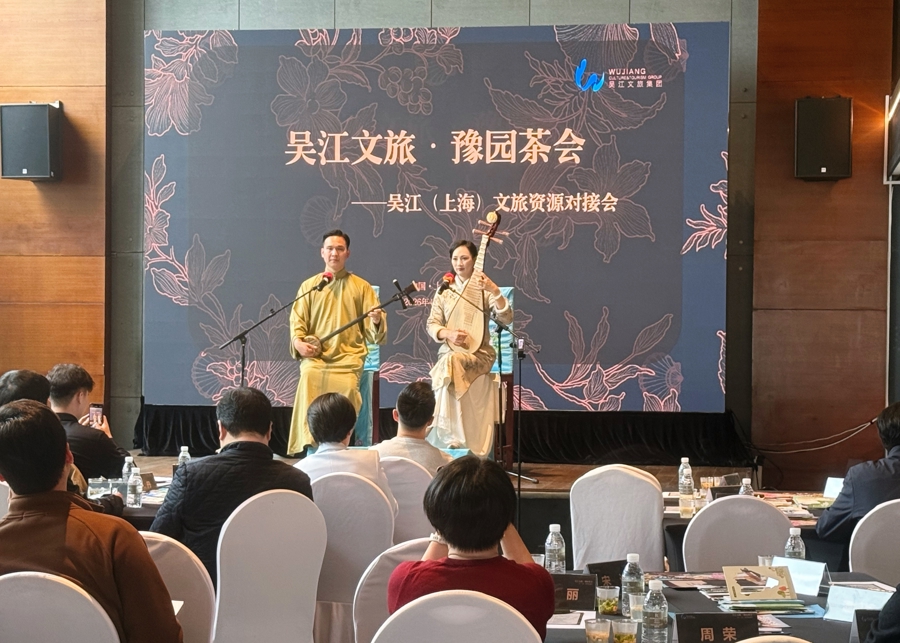 一杯熏豆茶,一杯待帝茶,一段软软的苏州评弹,一场别开生面的“茶会”。4月22日,“吴江文旅·豫园茶会——吴江(上海)文旅资源对接会”在上海举行。活动突破传统推介模式,采用“下午茶+主题分享+自由对接”的轻松形式,吸引了沪苏两地文旅企业、头部品牌主理人、投资机构代表及媒体人士约60人参加。